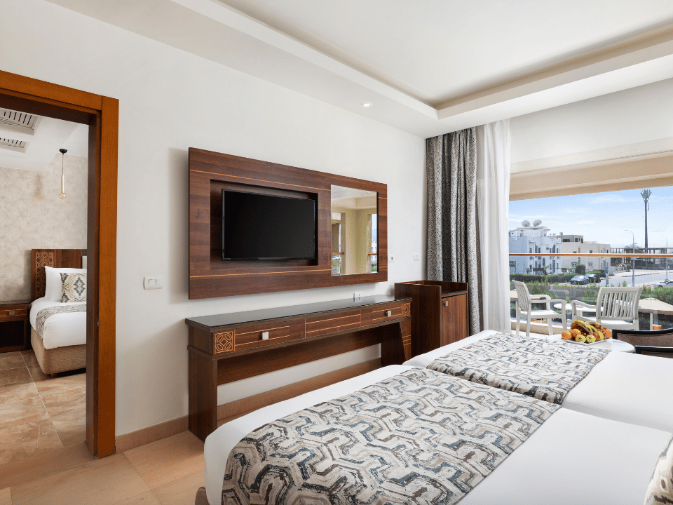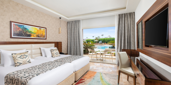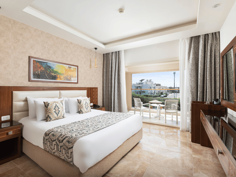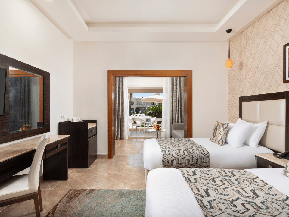 SZOBÁK: Tágas, barátságosan berendezett STANDARD szobák (kb. 35 m2), zuhany, WC, hajszárító, széf, telefon, műholdas TV, minibár, légkondícionáló berendezés, balkon/ terasz. A nagyobb alapterületű CSALÁDI szobákban több típusa is foglalható kínálatunkban: családi szoba tolóajtóval elválasztott szobában, kertre illetve medencékre néző kilátással (45 m2 ), illetve két légteres/ két hálószobából álló nagyobb családi szoba is foglalható (75 m2 ) 2 egyszemélyes ágy és 1 nagy franciaágy.