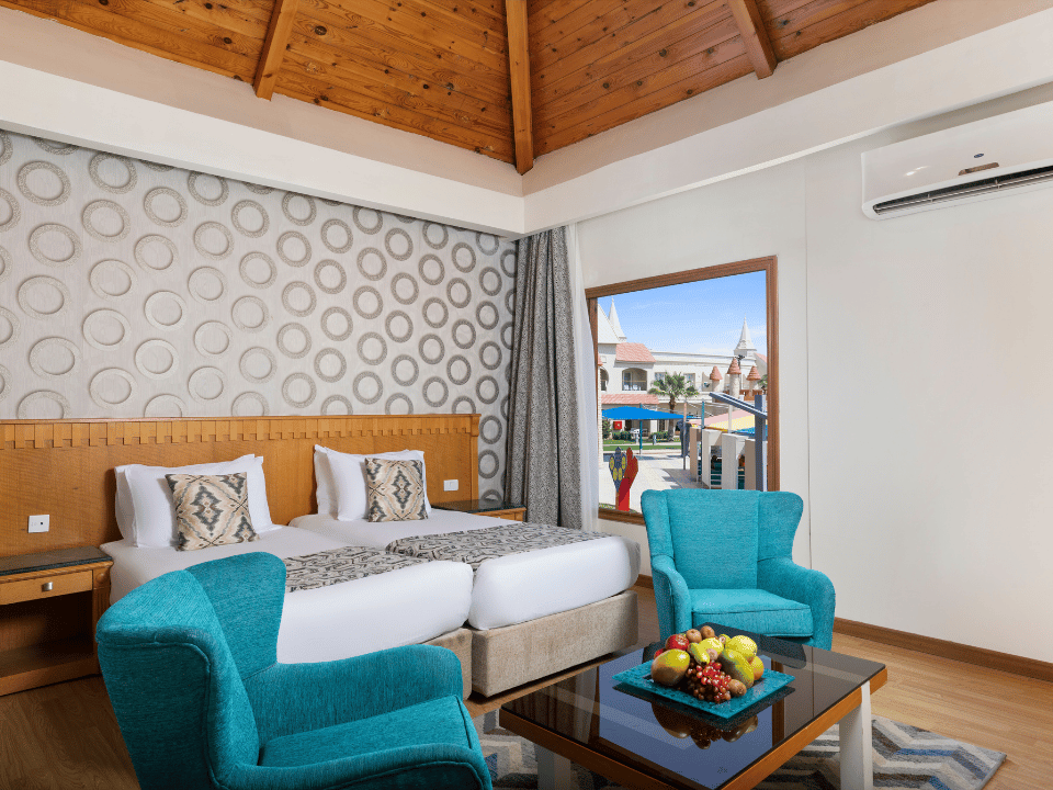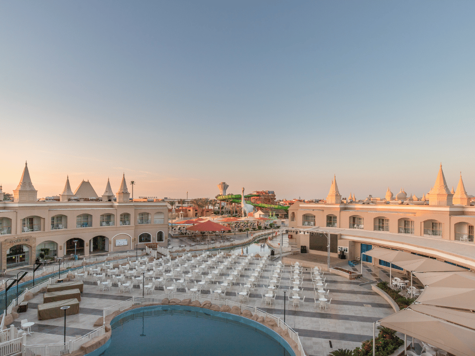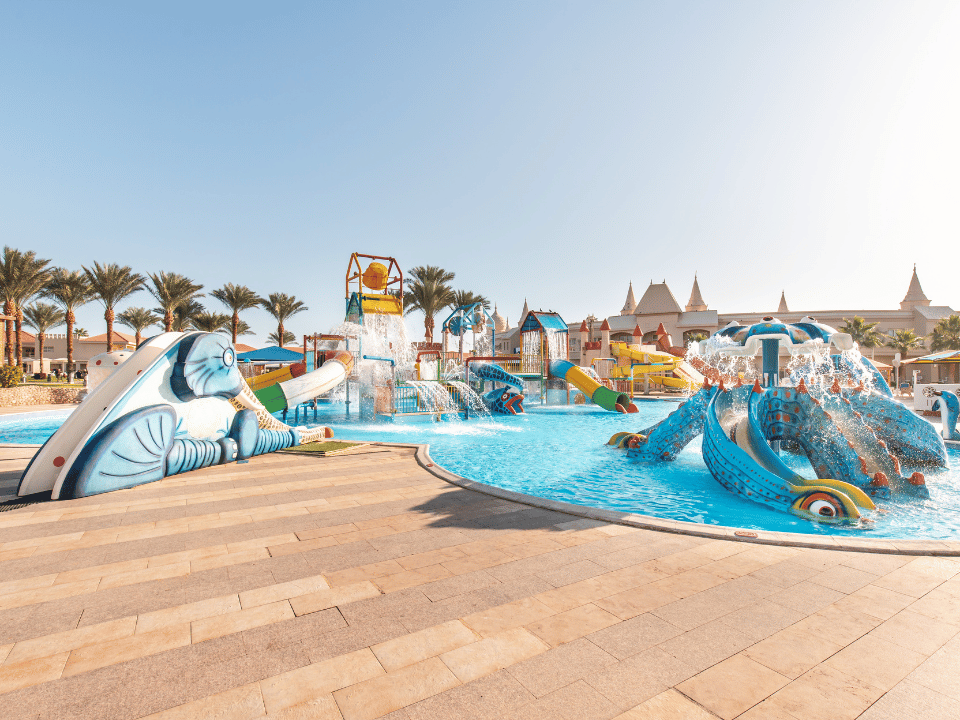 Az 558 szoba a kétemeletes épületekben helyezkedik el. A szálloda részét képezi a medencés-lagúnás kert, mely akár vízibiciklivel is bejárható. Ez a modern 4 csillagos szálloda a kb. 133.905 m2-en elterülő AQUA PARK CITY része, ahol vízipark, egy 450 méter hosszú sétány kávéházakkal és éttermekkel, bazár, disco, egy kis üzlet és egy pékség is található. Az impozáns hotelben recepció, internet hozzáférés (térítés ellenében), pénzváltó automata, 4 étterem, 1 á la carte étterem, különböző bárok, üzletek és fodrászat üzemel, valamint 9 édesvizű medence, napozóterasz és medencebár. A napozóágyak, a törölközők, és a napernyők használata a medencénél és a tengerparton ingyenes. A szálloda egész területén a WIFI használata díjmentes.
