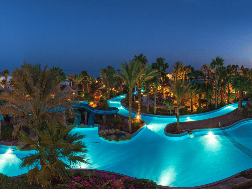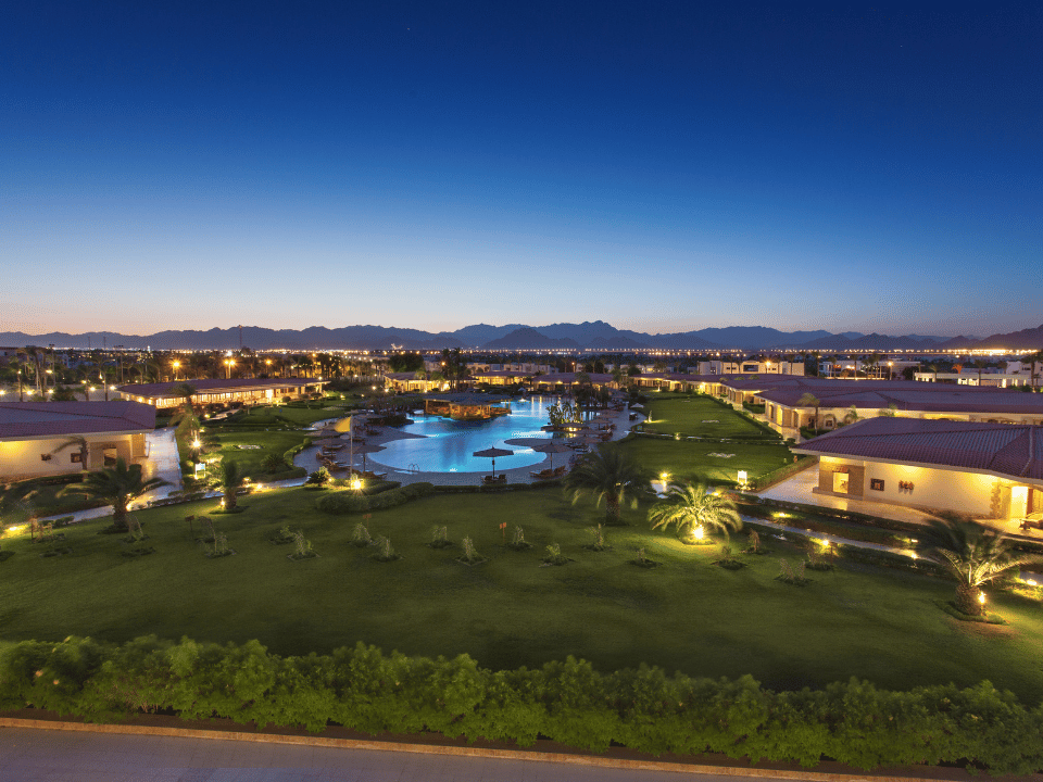 A luxusszálloda gyönyörű helyen, egy sziklás fennsíkon található. A Jolie Ville 18 lyukú  golfpálya a közelben található. Sharm El Sheikh repülőtere körülbelül 5 km-re, a Naama-öböl pedig körülbelül 7 km-re található (ingyenes, menetrend szerinti transzfer).