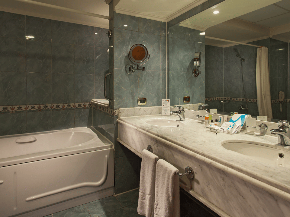 SZOBÁK:  A szobák káddal/zuhanyzóval, WC-vel, hajszárítóval, légkondicionálóval, 32" LED műholdas TV-vel, Wi-Fi-vel (térítés ellenében), széffel, ásványvízzel, kávé- és teafőzővel, valamint erkéllyel/terasszal felszereltek. A minibárt naponta üdítőkkel és vízzel is díjmentesen feltöltik. A deluxe szobák 50 m²