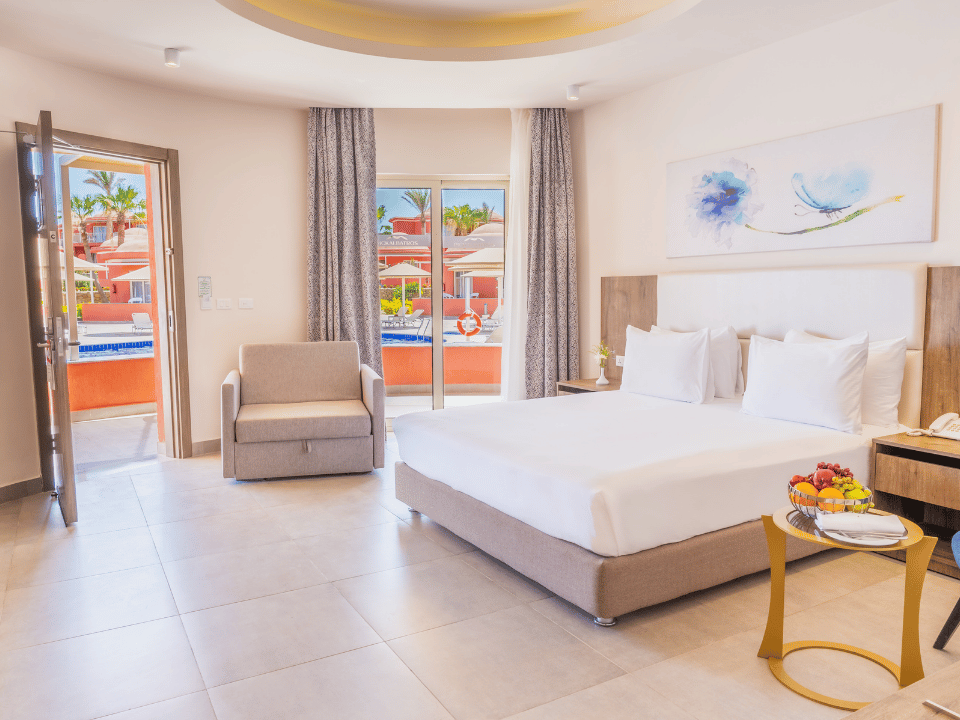 Bungaló kilátás a kertre kb. 45 nm (BDG), vagy kilátással a medencére (BUP). A külön bejáratú, légkondicionált bungaló 1 hálószobával, valamint zuhanyzóval és hajszárítóval ellátott, 1 fürdőszobával rendelkezik. A kertre néző terasszal rendelkező bungaló minibárral és síkképernyős, műholdas TV-vel rendelkezik. A szálláson 1 ágy található.