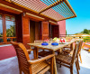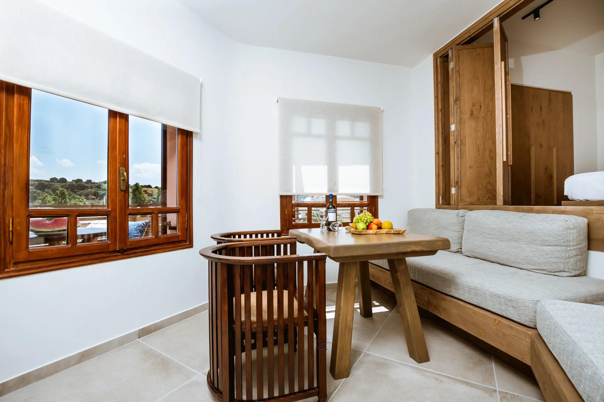 - 1 hálószobás lakosztálya gyönyörű, természettel harmonizáló, modern stílusban lett felújítva. Felszereltségükhöz légkondicionáló, konyhasarok (vízforraló, micro, kávéfőző, minihűtő, kenyérpirító), sík képernyős TV, hajszárító, széf, valamint balkon vagy terasz. Hálószobából és nappali/konyha részből állnak.