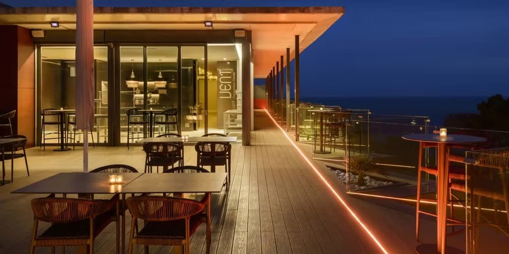 A vendégek rendelkezésére áll két külső medence, spa- és wellnessrészleg, jacuzzi, edzőterem, napozóágyak és teraszok, valamint bárak és étterem tengerre néző terasszal.