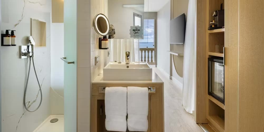 A modern, letisztult szobák kényelmes berendezéssel és hangszigetelt kialakítással várják a vendégeket. Három szobatípus foglalható: a Superior Double with Terrace, amely tágas terasszal rendelkezik; a Superior Double Frontal Sea View, amely lenyűgöző, közvetlen tengeri panorámát kínál; valamint a Single Room, amely egyedül utazók számára ideális, ugyanazzal a modern kényelemmel. Mindegyik szoba légkondicionált, jól felszerelt és tökéletes pihenést biztosít.