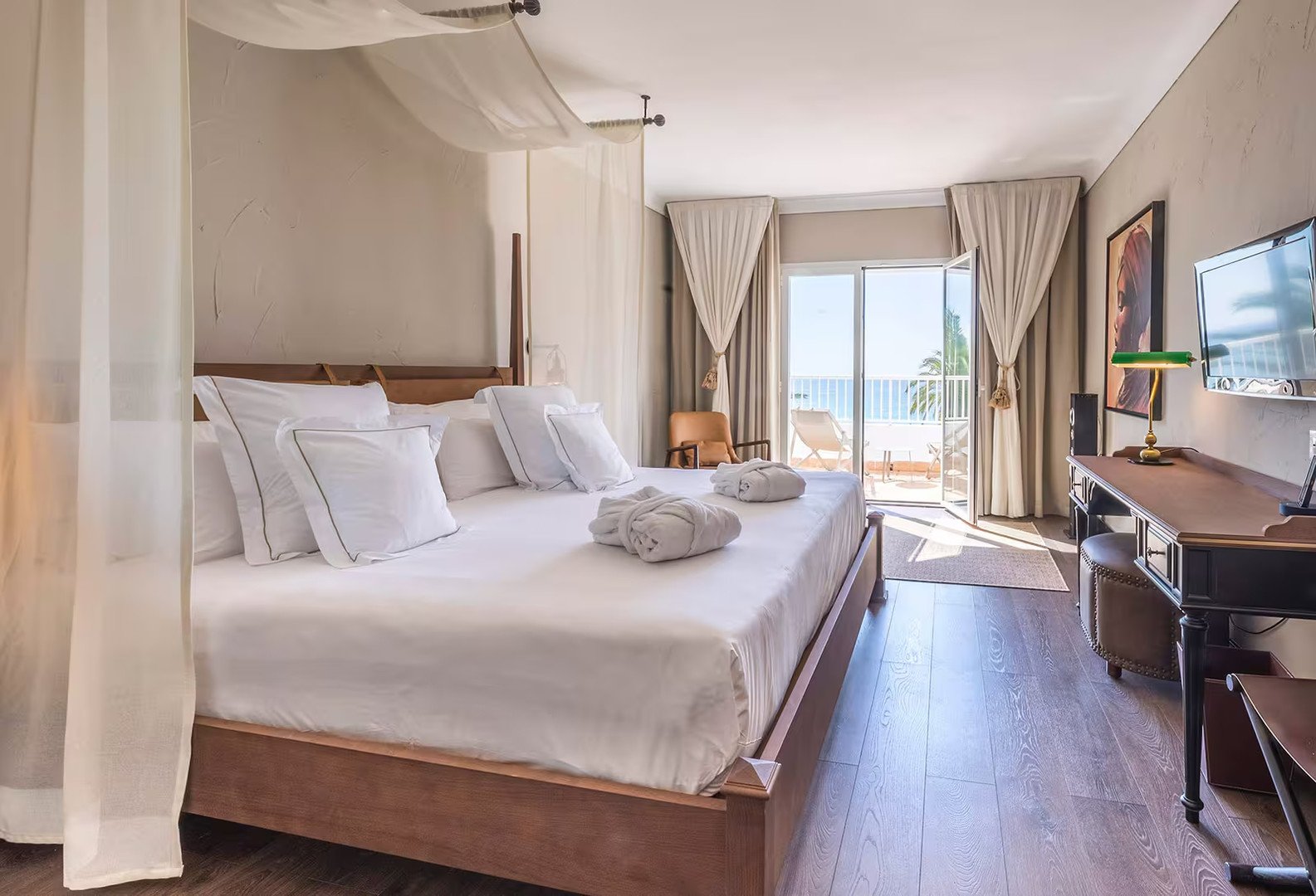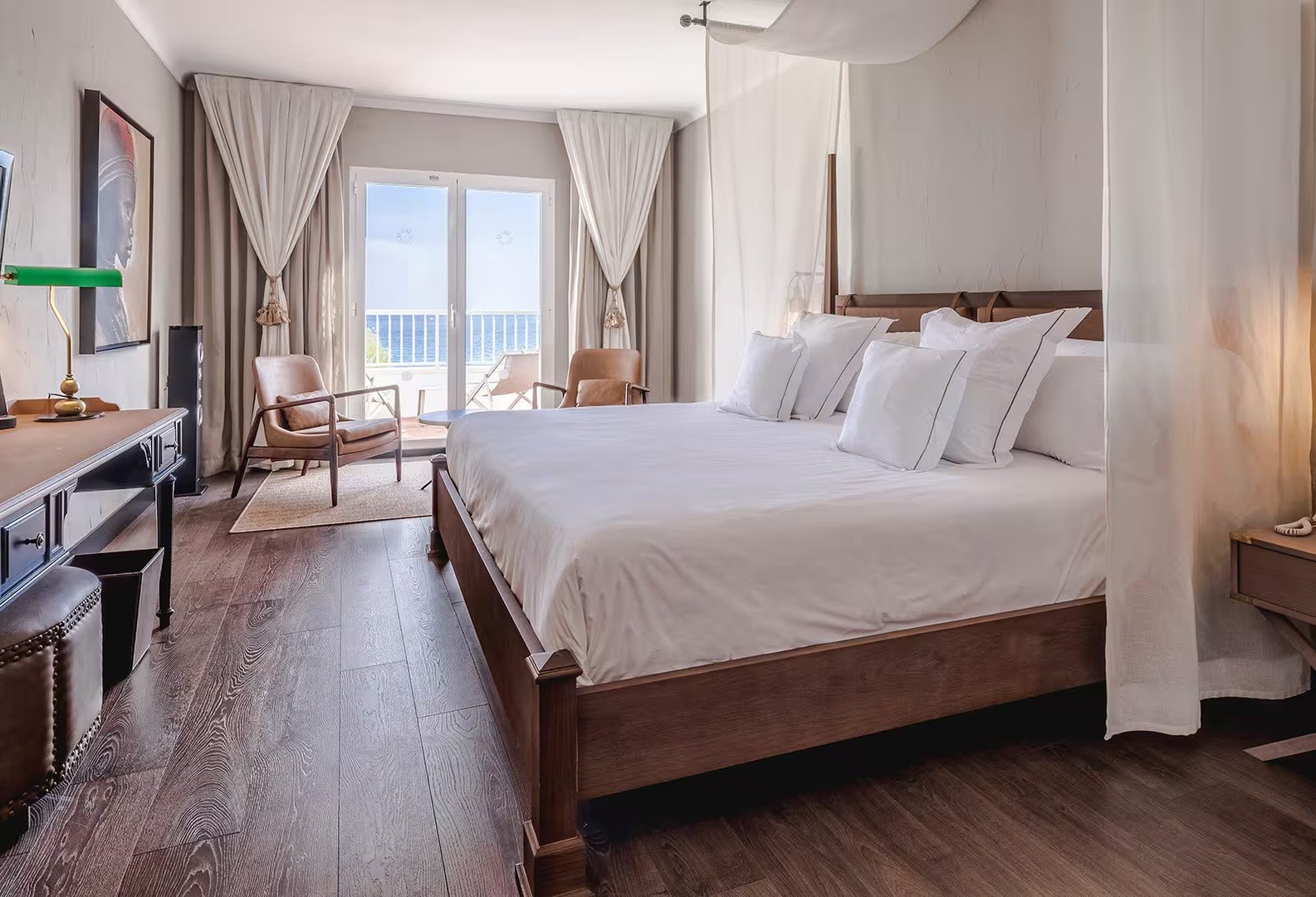 Elegáns, tágas, modern berendezésű szobák erkéllyel vagy terasszal, részben tengerre néző kilátással.