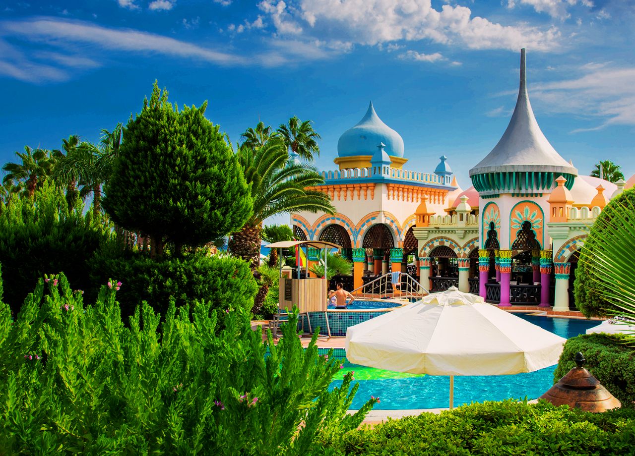 Különösen Side régióban találhatunk olyan nagy resort típusú szállodákat, amelyekhez aquapark, gyerekklub és külön gyerekeknek szóló attrakciók is tartoznak, a sekély vízű tengerpart mellett. A Kamelya Aishen Club például ilyen!