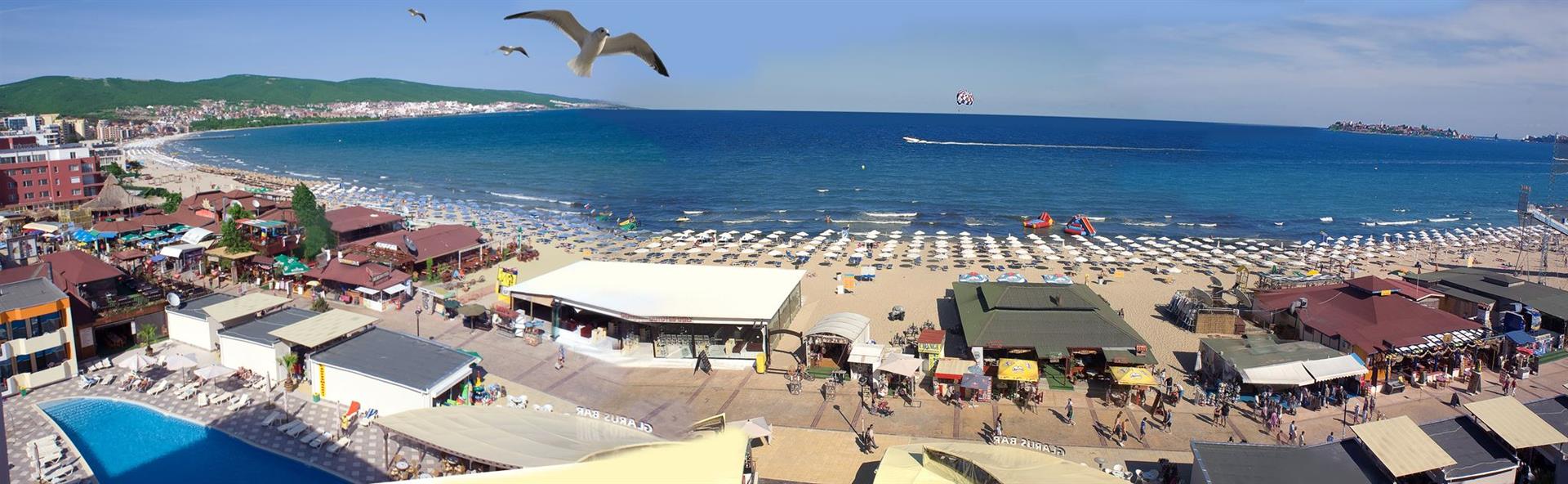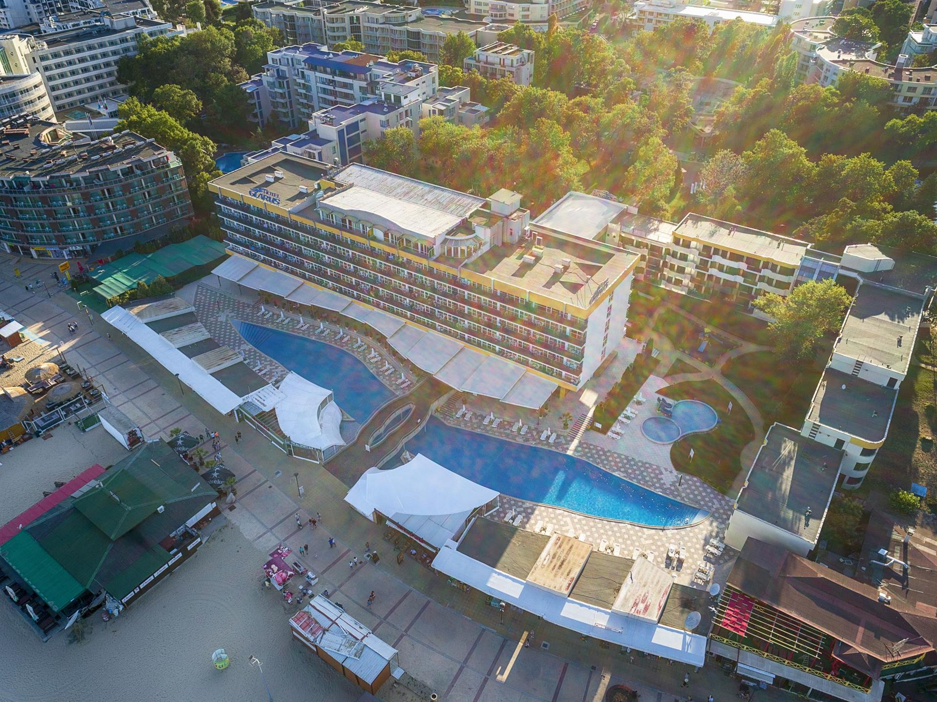 A szálloda 500 m-re található Napospart központjától, 35 km-re Burgasz repülőterétől. A nyilvános homokos strand 10 méterre található. A szállodát 1970-ben nyitották meg, legutóbb 2009-ben újították fel.