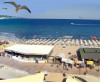 Napozóágyak és napernyők a strandon térítés ellenében.
