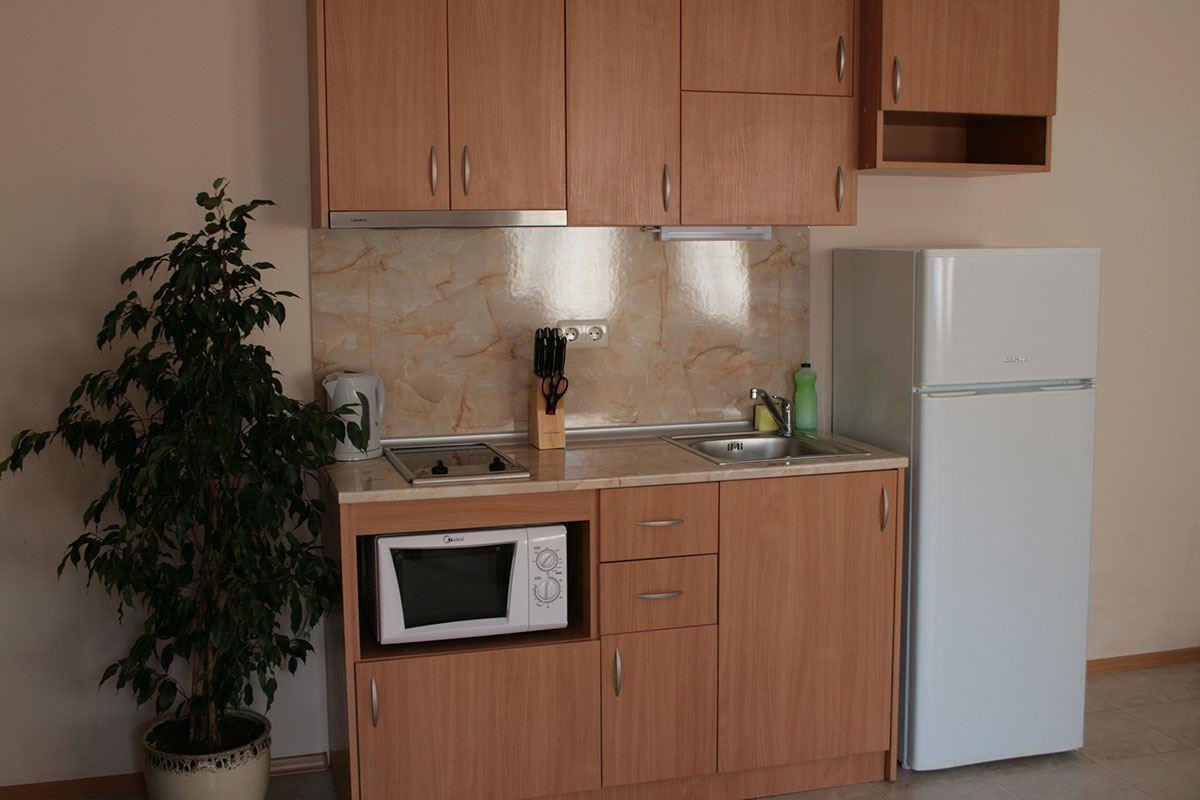• felszerelt konyha (tűzhely, hűtőszekrény, mikrohullámú sütő, edénykészlet)