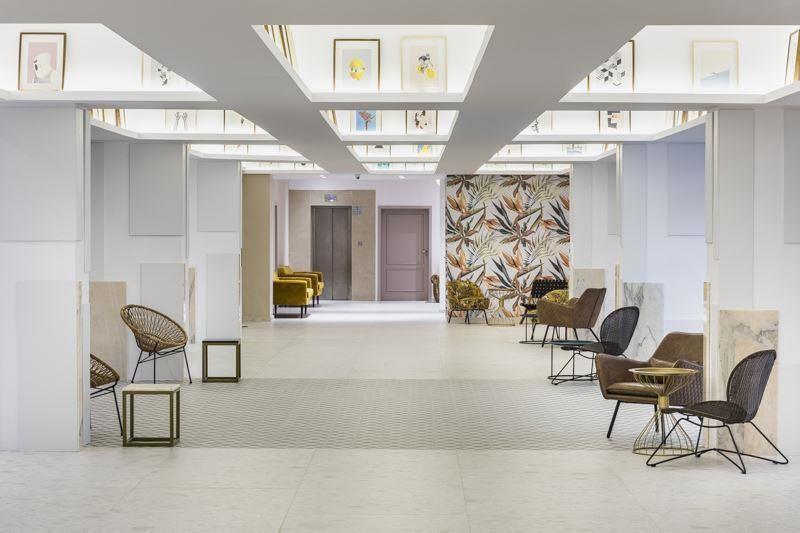 Egy 4 emeletes épületből áll, 3 lifttel rendelkezik.