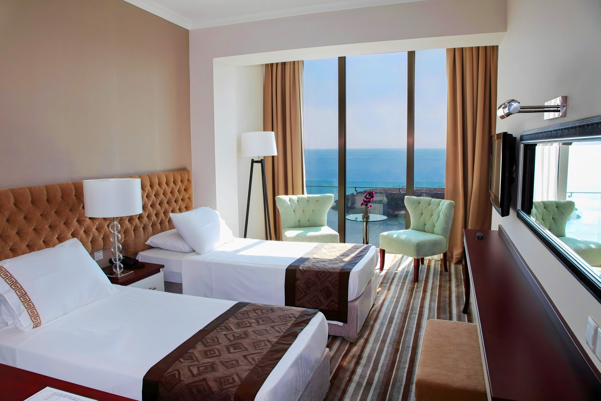 - lassan mélyülő, homokos tengerpart (a szálloda épületétől kb. 50-100 m-re, egy enyhe dombon túl)