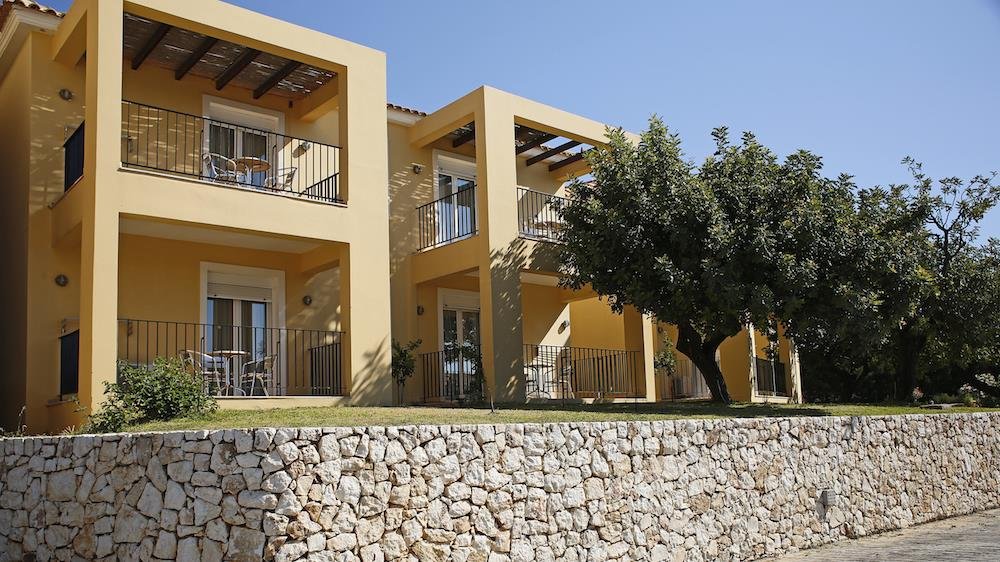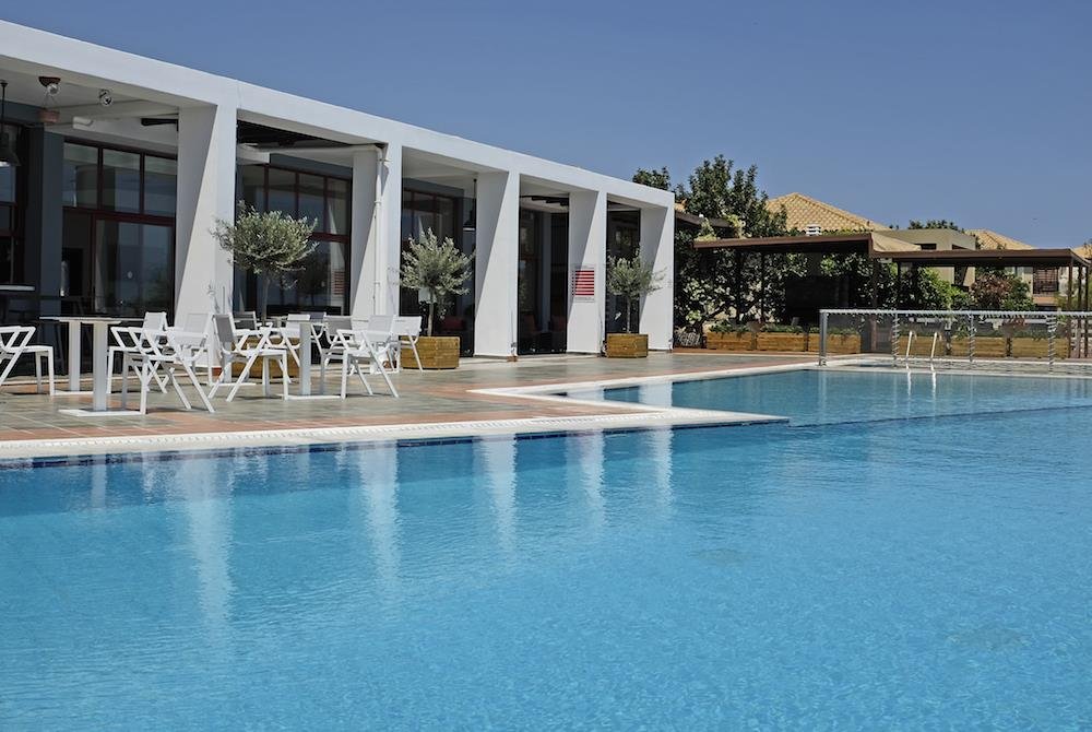 A főépületből és több melléképületből álló szálloda Skala határában, egy domboldalban fekszik, lélegzetelállító kilátással a sziget nyugati partjára. Skala központja kb. 2 km-re (ingyenes szállodai buszjárat), a menetrend szerinti busz megállója kb. 500 m-re.