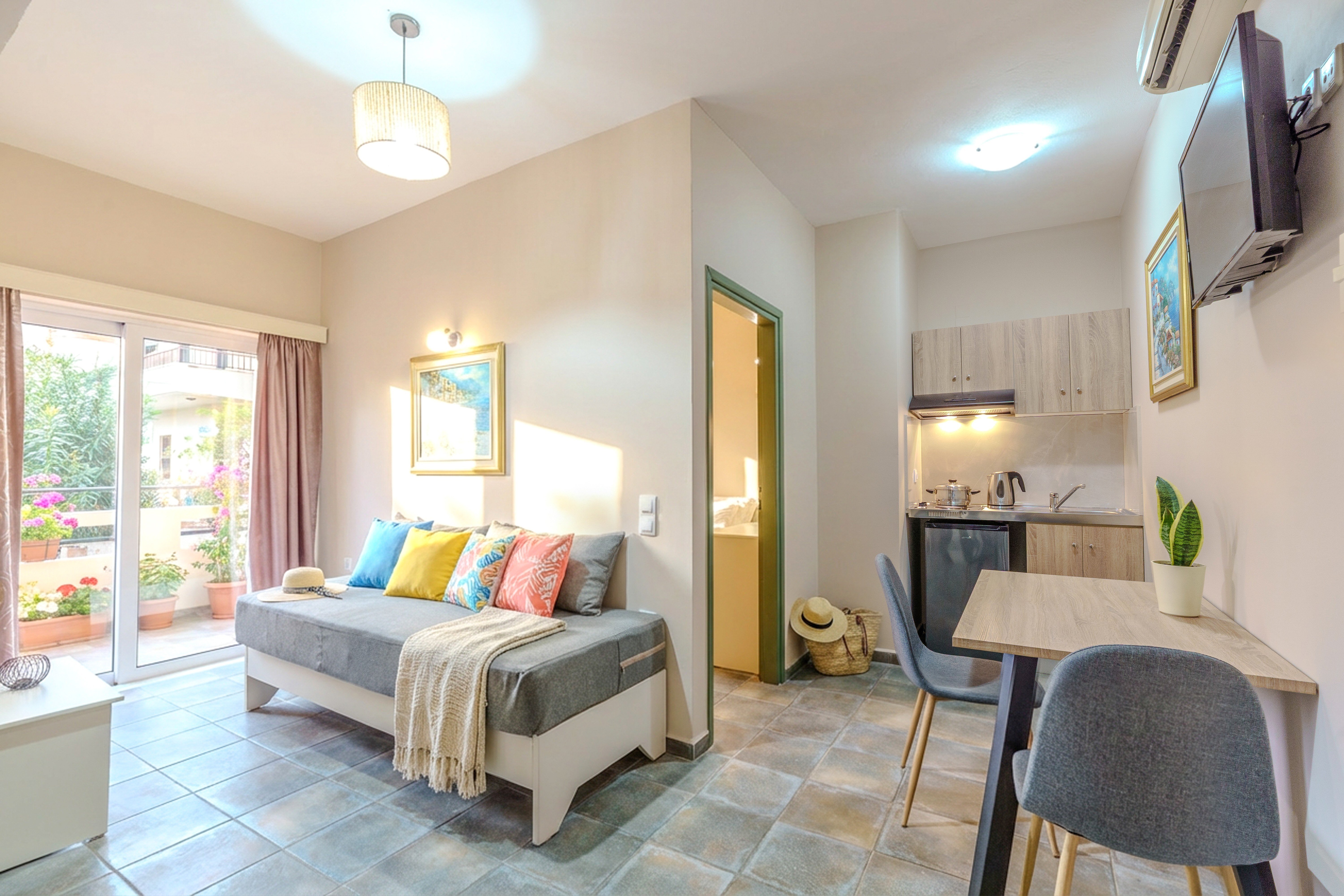 A több épületből álló, kis családi szálloda Agia Marina központjában található, kb. 10 km-re Chania központjától. A homokos strand kb. 150 m-re található, a közelben pedig számos étterem, bár, kávézó és üzlet áll rendelkezésre. Minden korosztály számára ajánljuk.