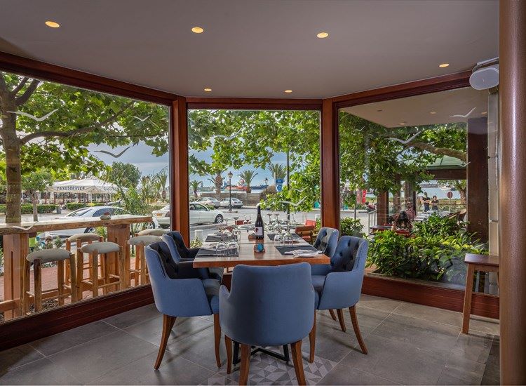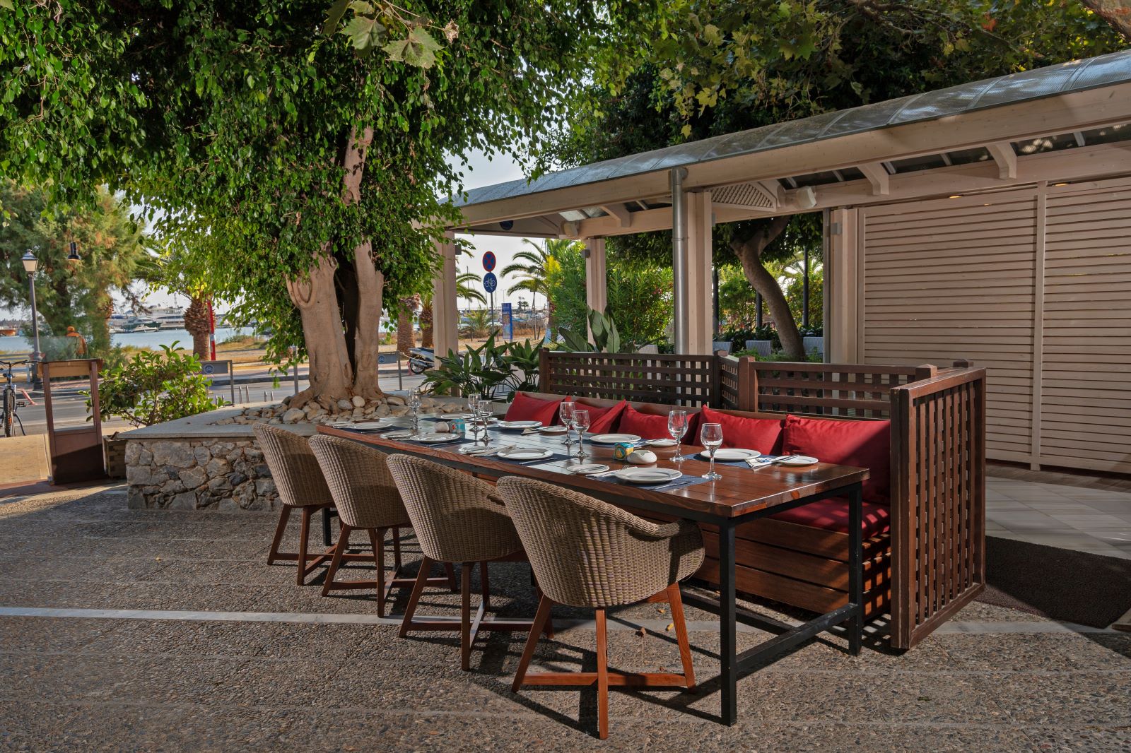 24 órás recepció, ingyenes WIFI a hotel területén. Moulveri étterme helyi krétai ínyencségekkel, nemzetközi fogásokkal, látvány főzéssel várja a vendégeket. A The Navy Blend bár nemzetközi italokat és koktélokat kínál térítés ellenében. Wellness központja változatos kezeléseket, kényeztető masszázsokat és egy kisebb méretű medencét kínál, a mozgás szerelmeseit egy kisebb edzőterem is várja.