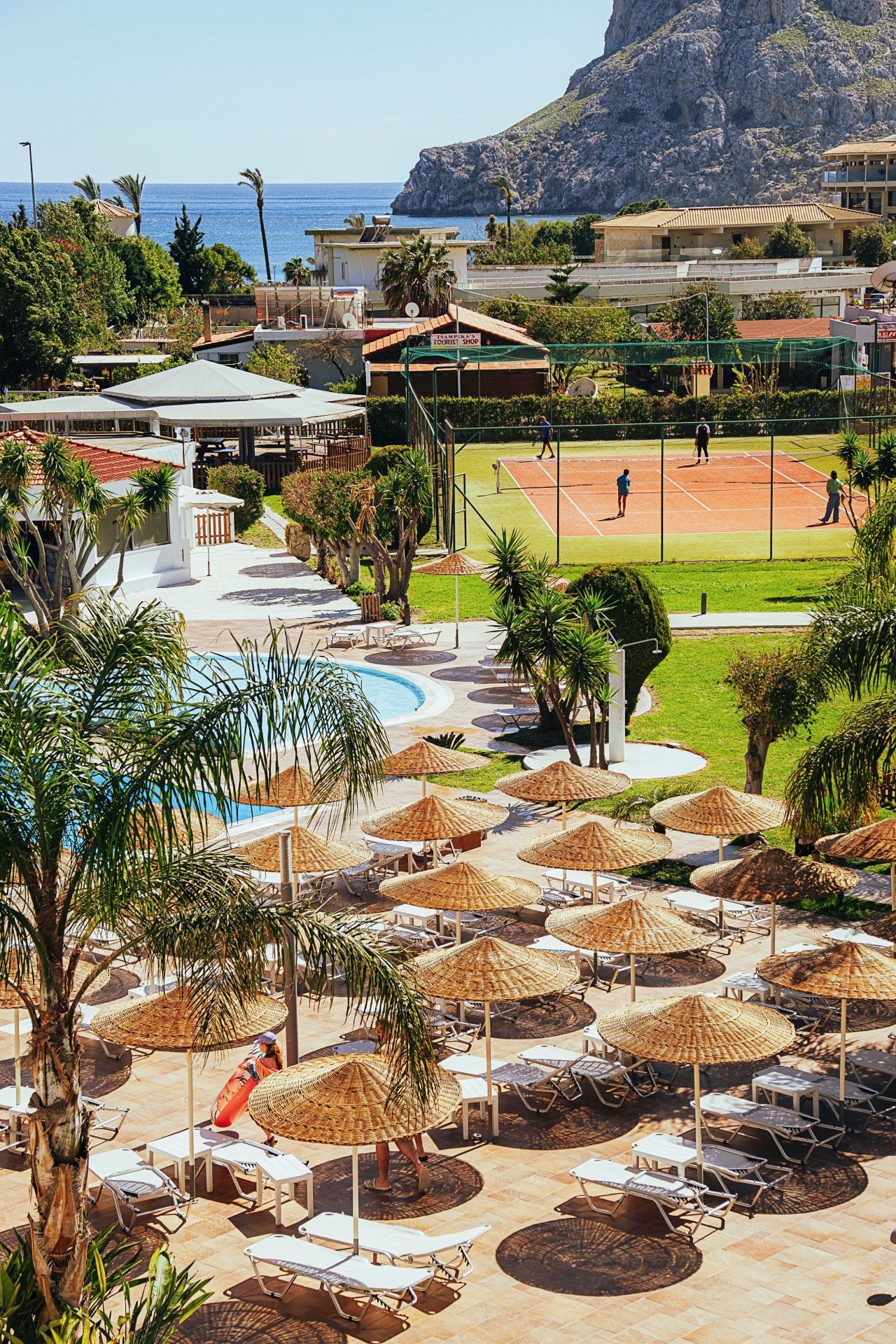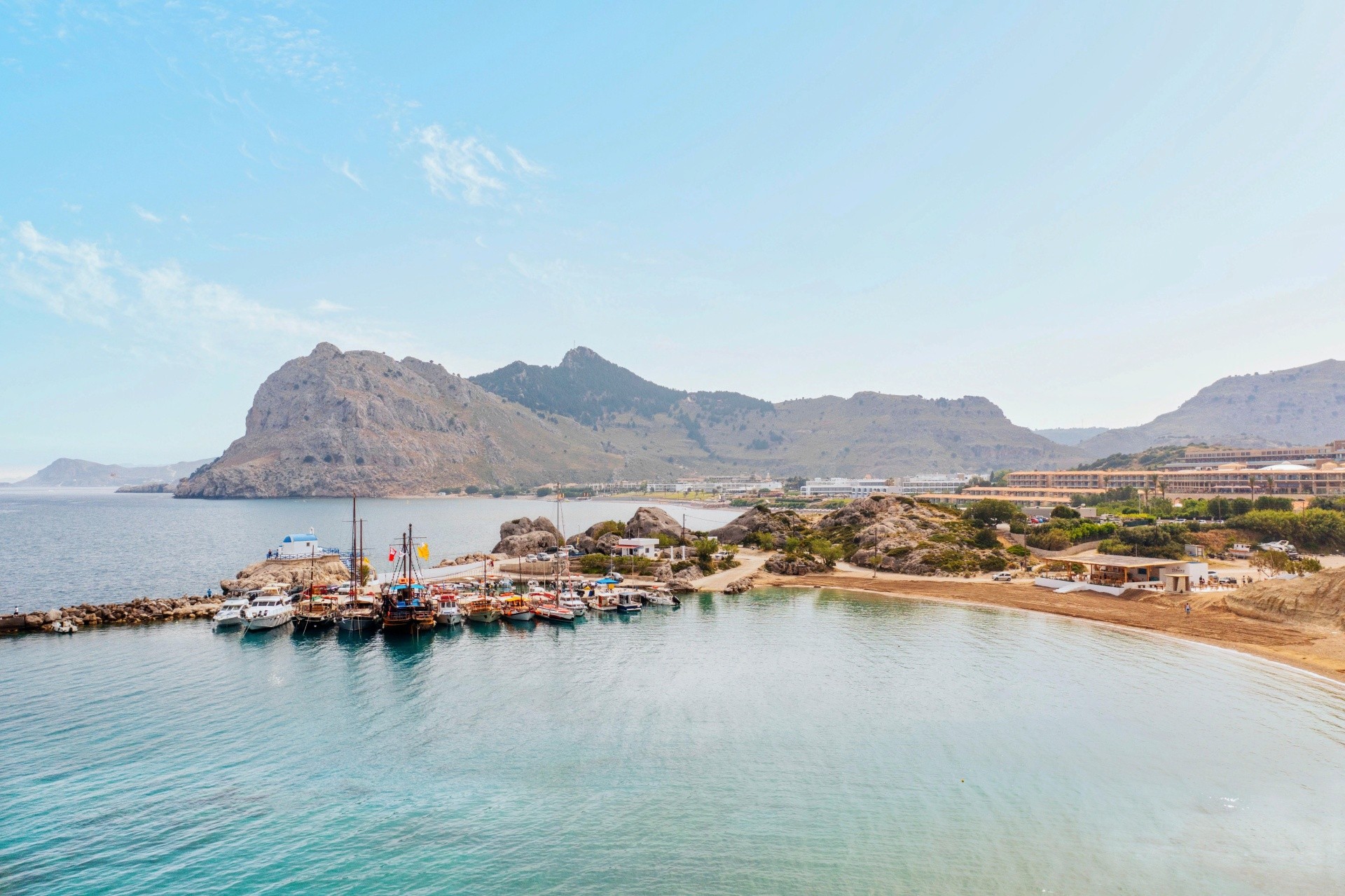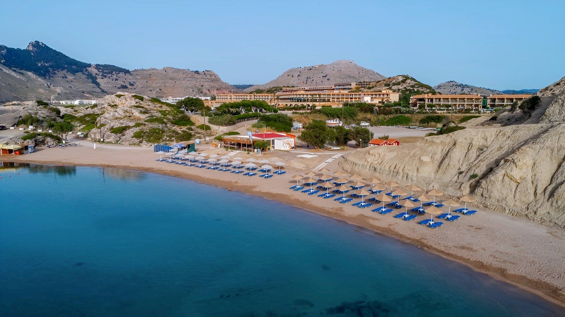A szálloda Kolymbia központjában található, ahol üzletek, tavernák és bárok állnak rendelkezésre. A homokos strand kb. 250 m-re, a híres Tsambika-strand kb. 6 km-re, az Anthony Quin strand pedig kb. 13 km-re található.