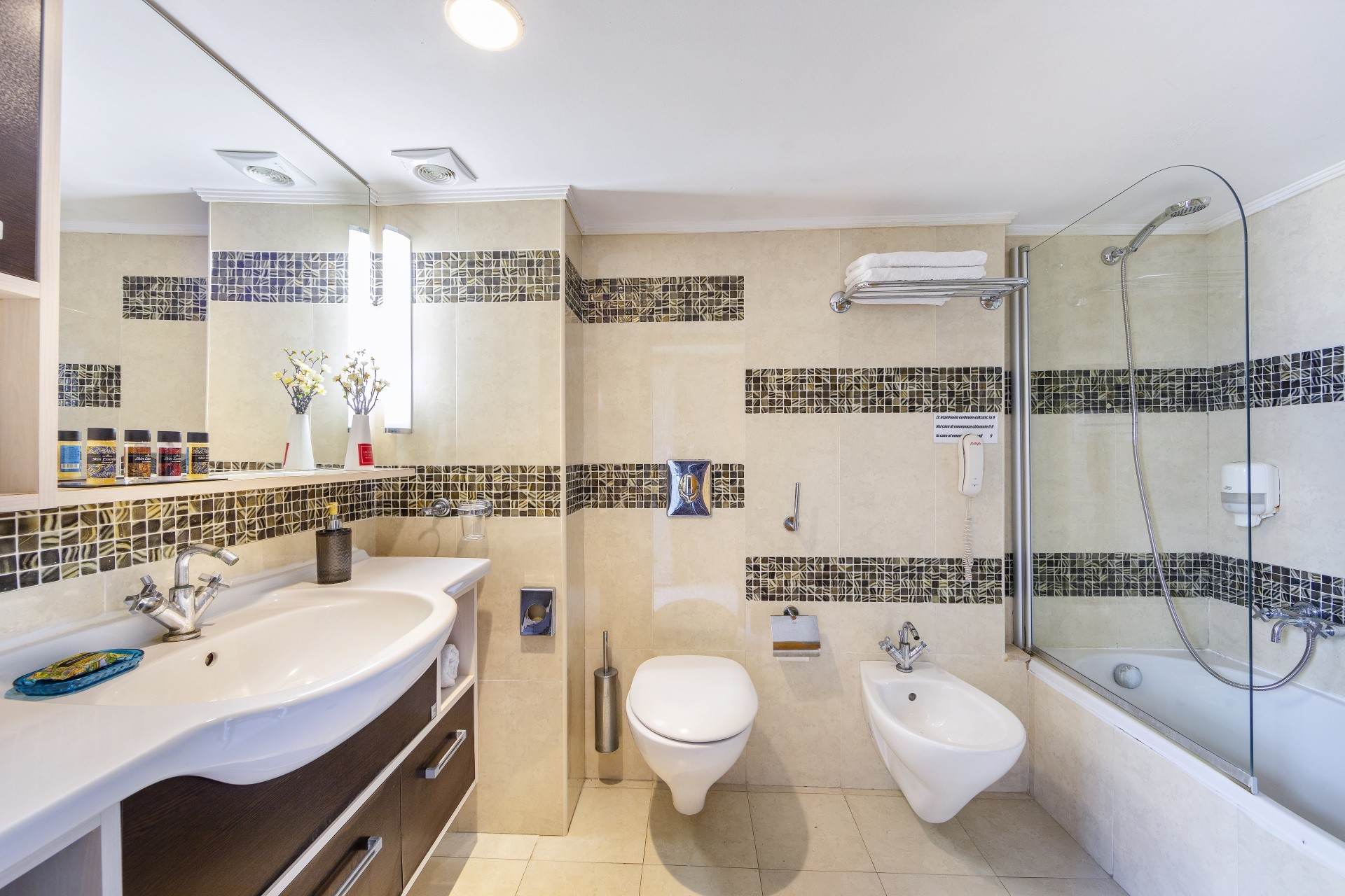 • fürdőszoba (zuhanyozó, hajszárító, WC)