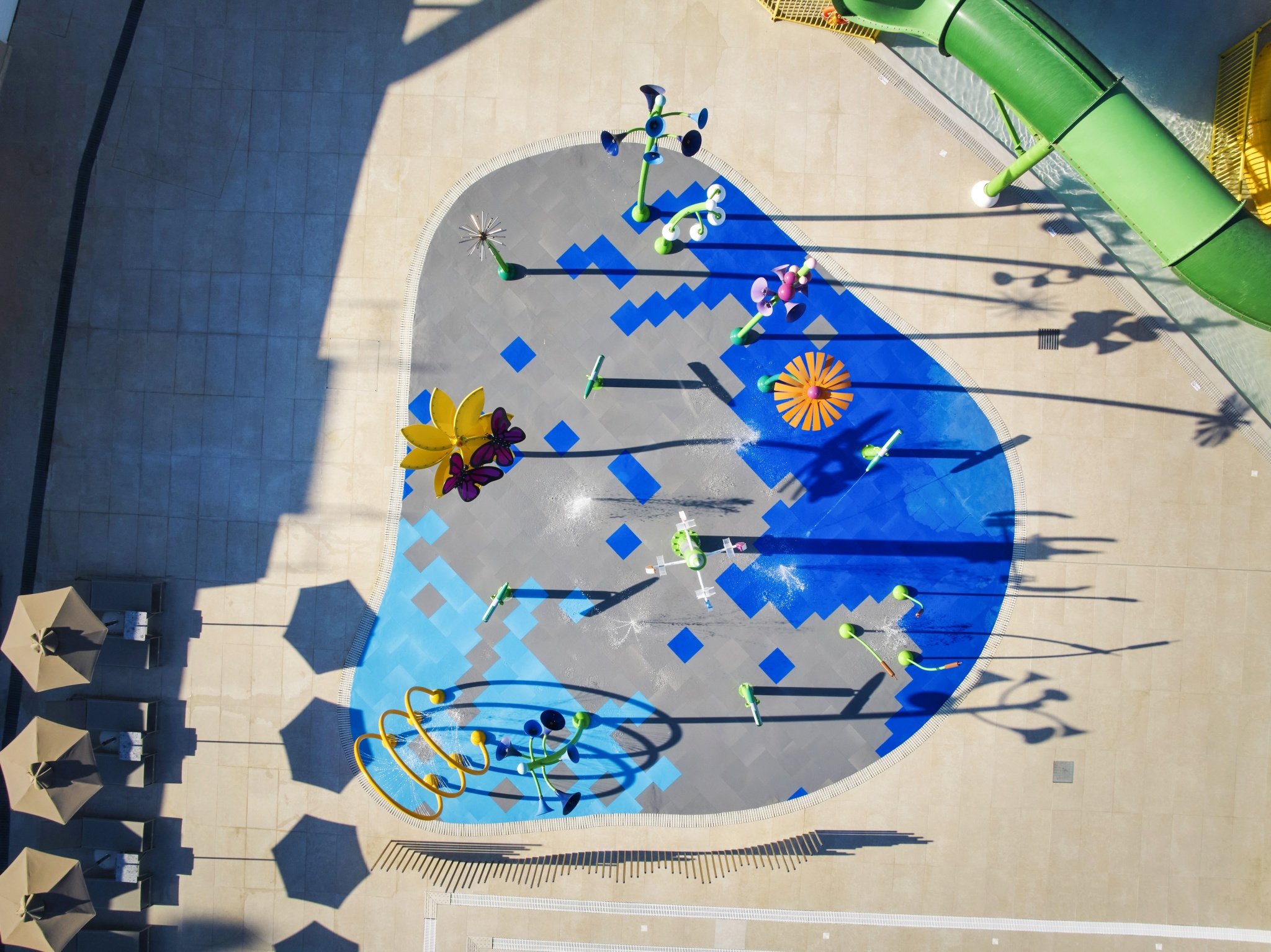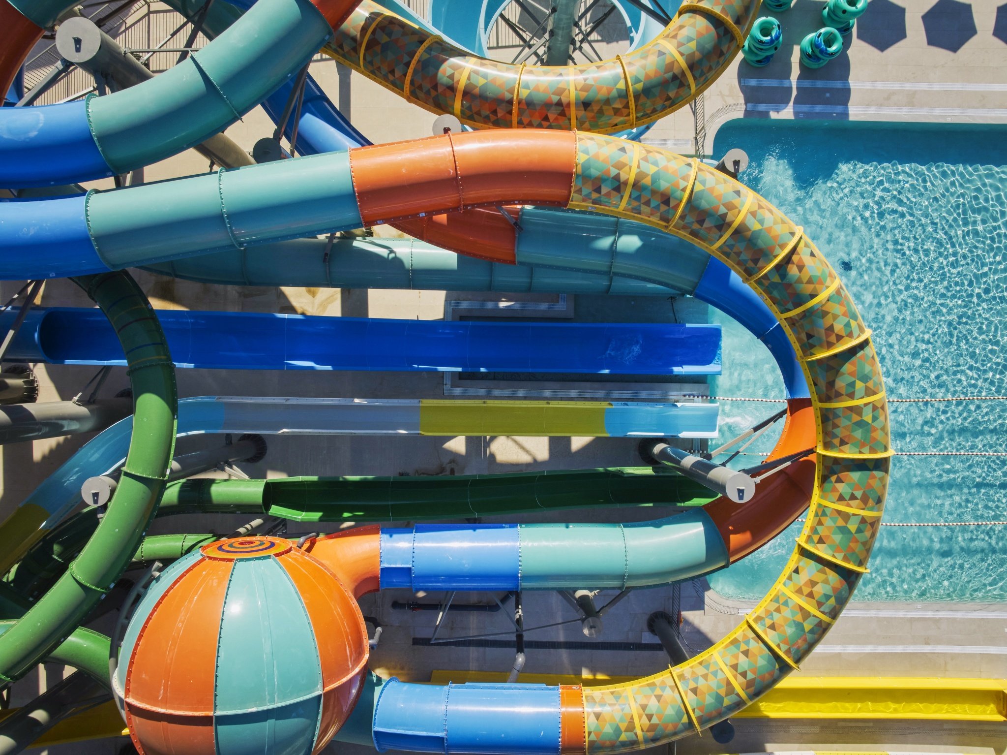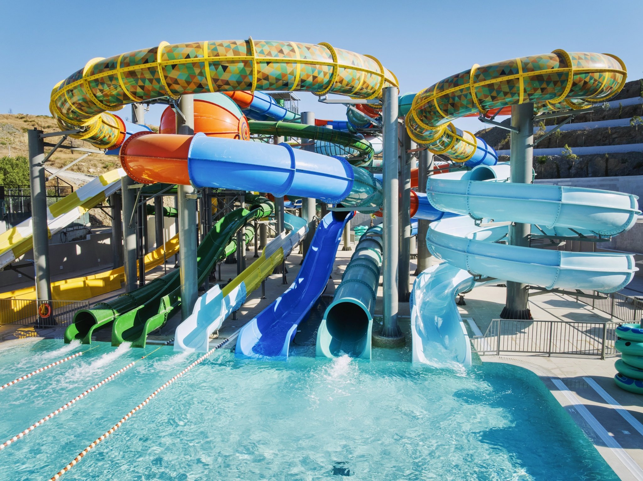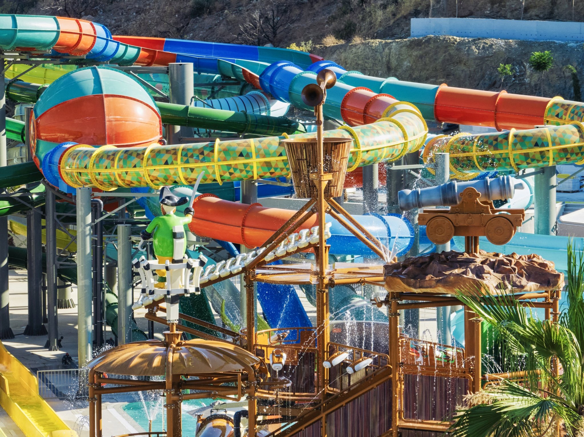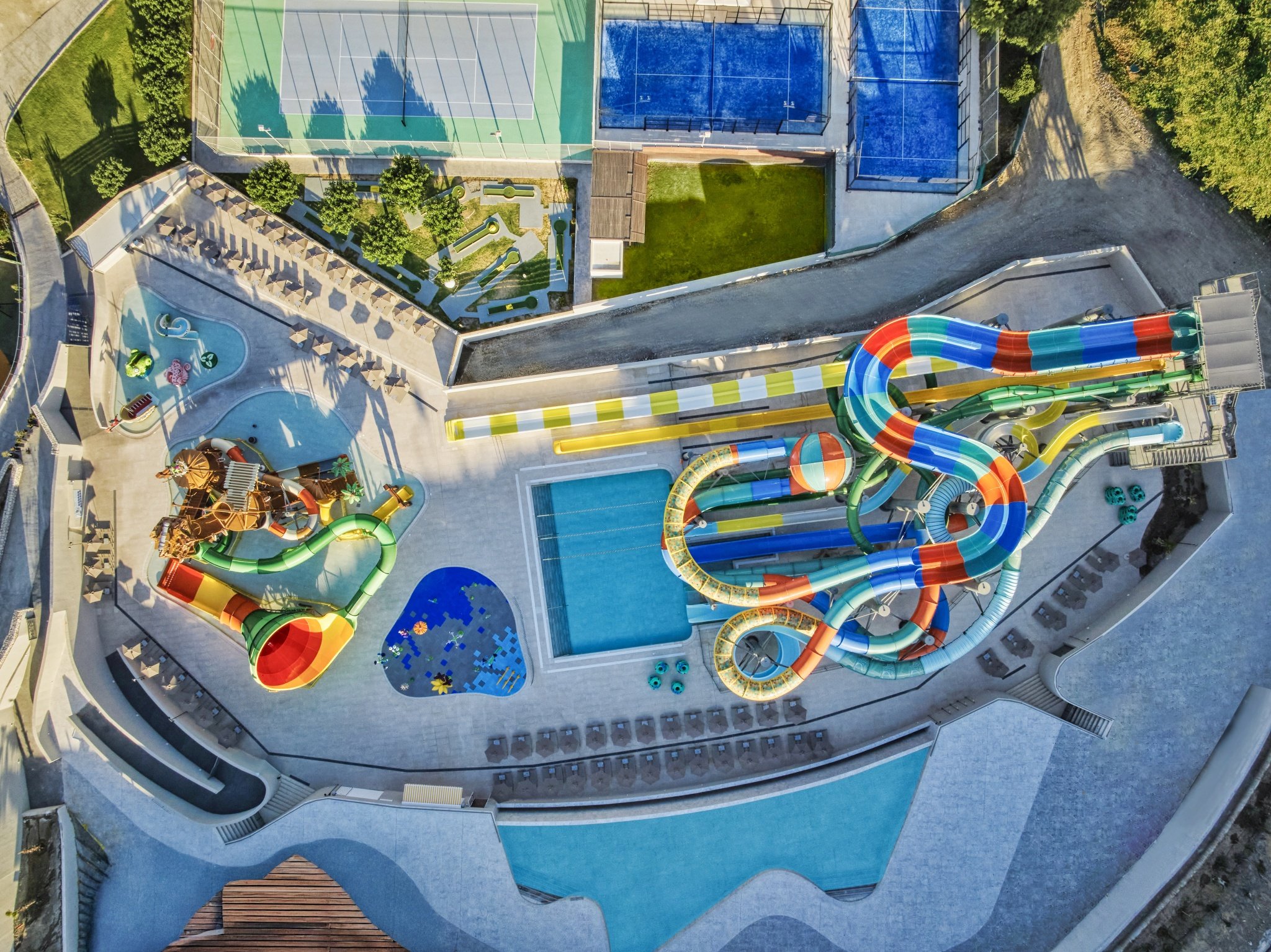 - aquapark (7 nagy csúszda 140 cm feletti gyermekek számára, kisebb csúszdák minden korosztály számára, vízi zóna interaktív vízi játékokkal és masszázscsapokkal