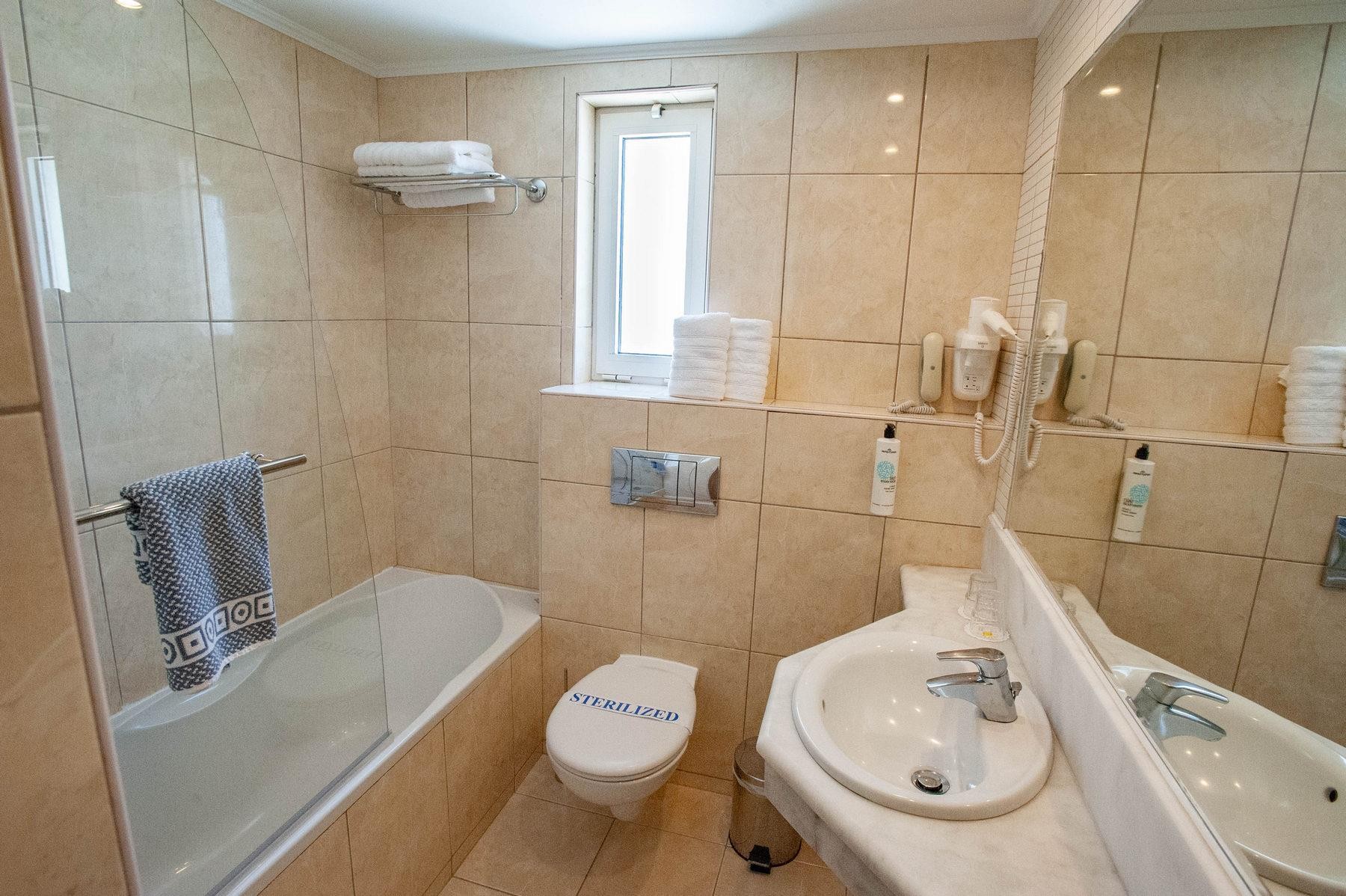 • fürdőszoba (fürdőkád vagy zuhanyozó, hajszárító, WC)