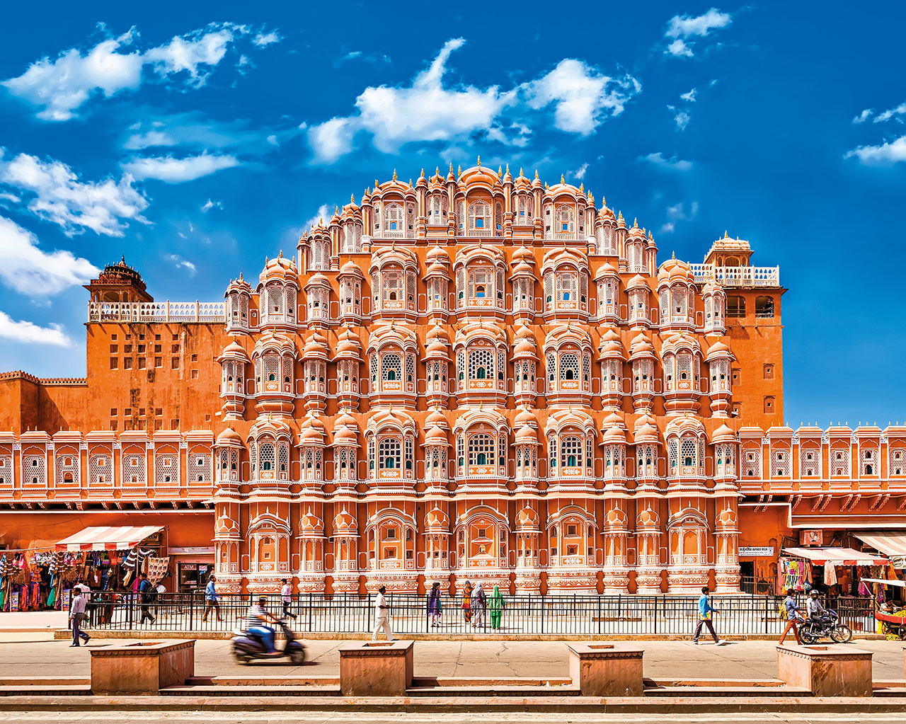 Bőséges reggeli után Dzsaipur városát fogjuk bebarangolni. Dzsaipur Rádzsasztán szövetségi állam fővárosa. A Rózsaszín Város becenevét épületeinek jellegzetes színéről kapta. A félsivatagi környezetű, négymilliós lakosságú metropolisz ma fontos kereskedelmi és kulturális központ. Számos erőd-palota található az államban, melyekről úgy gondolták, hogy a király erejét mutatják. Ezek egyike a sziklás hegyvidékről a tájra tekintő, büszke Amber erőd, mely Dzsaipurtól 11 km-re található. Részei többek között a Jag Mandir (Győzelem csarnoka), és a Sheesh Mahal, azaz Tükörpalota - ebben a teremben mind a négy falon, és a mennyezeten is üveg csillog. Délután a Városi Palota, az egykori uralkodói rezidencia szépségei bűvölnek el minket. A komplexum a rádzspút és a mogul stílus jegyeit ötvözi. A Jantar Mantar obszervatórium a 18. században épült. Fotószünetre megállunk a város jelképének számító Hawa Mahal-nál. Az ötemeletes, rózsaszín homokkő palotában a háremhölgyek rejtve maradhattak, miközben az utca nyüzsgését figyelték. A nap hátralévő részében szabadidő vagy fakultatív program lehetőség: elefántháton utazás az Amber-erődnél. Visszatérés a hotelbe.