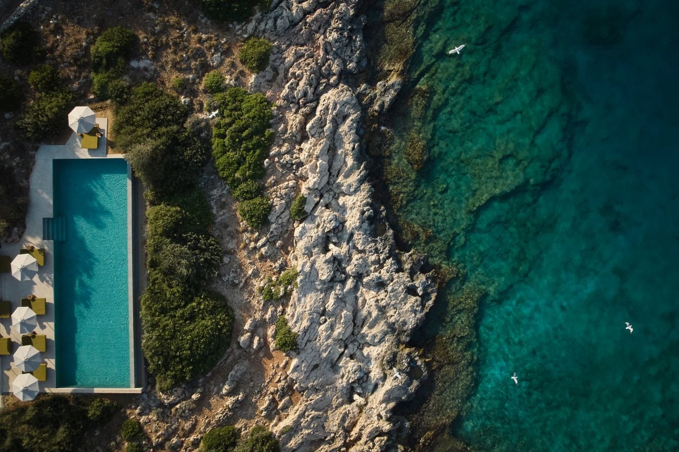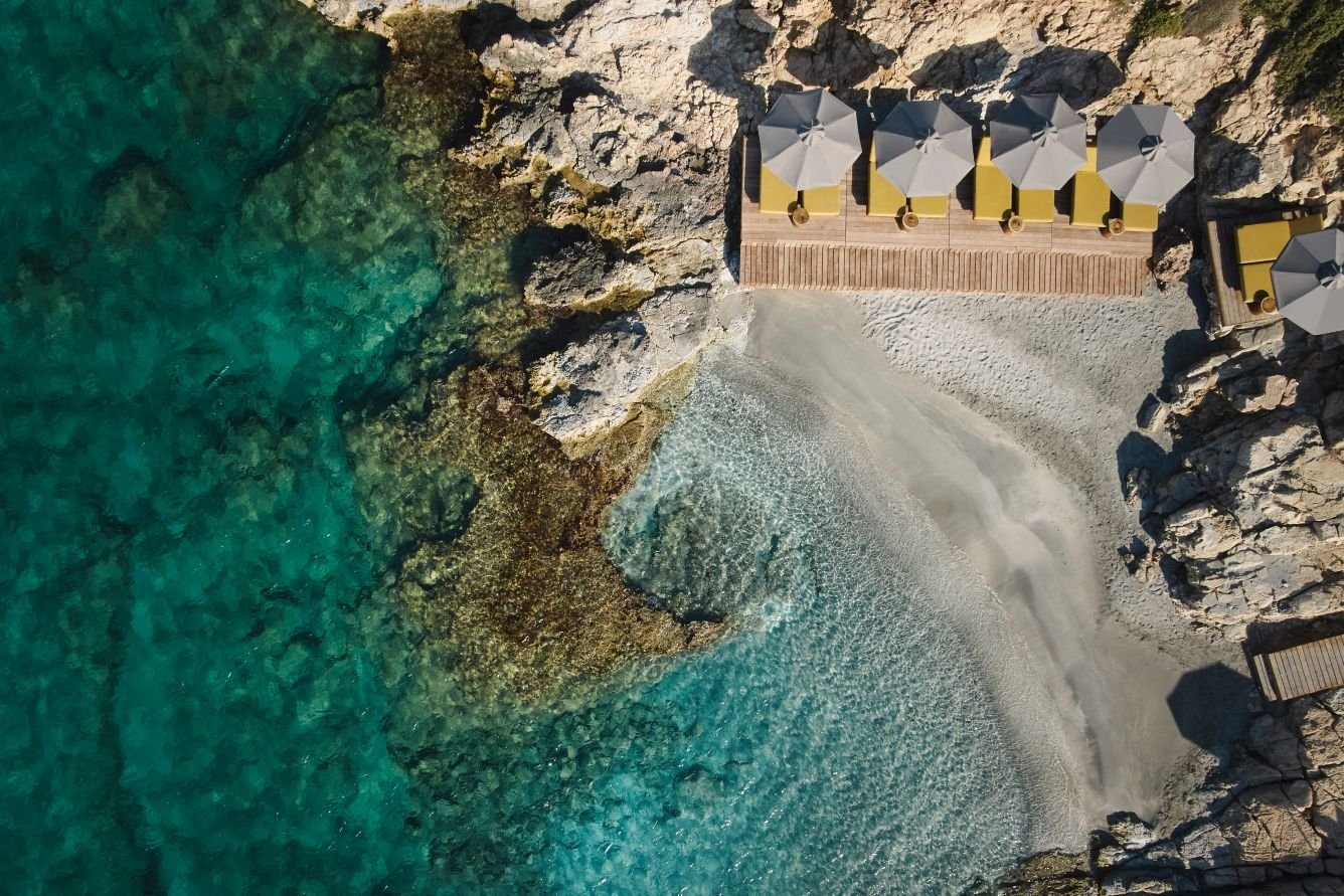 A szálloda közvetlen tengerparti elhelyezkedéssel rendelkezik, privát, sziklás partszakasszal és kiépített napozóteraszokkal. A kristálytiszta tengervíz lépcsőkön és létrákon keresztül könnyen megközelíthető, a napágyak és napernyők a vendégek számára díjmentesen használhatók.