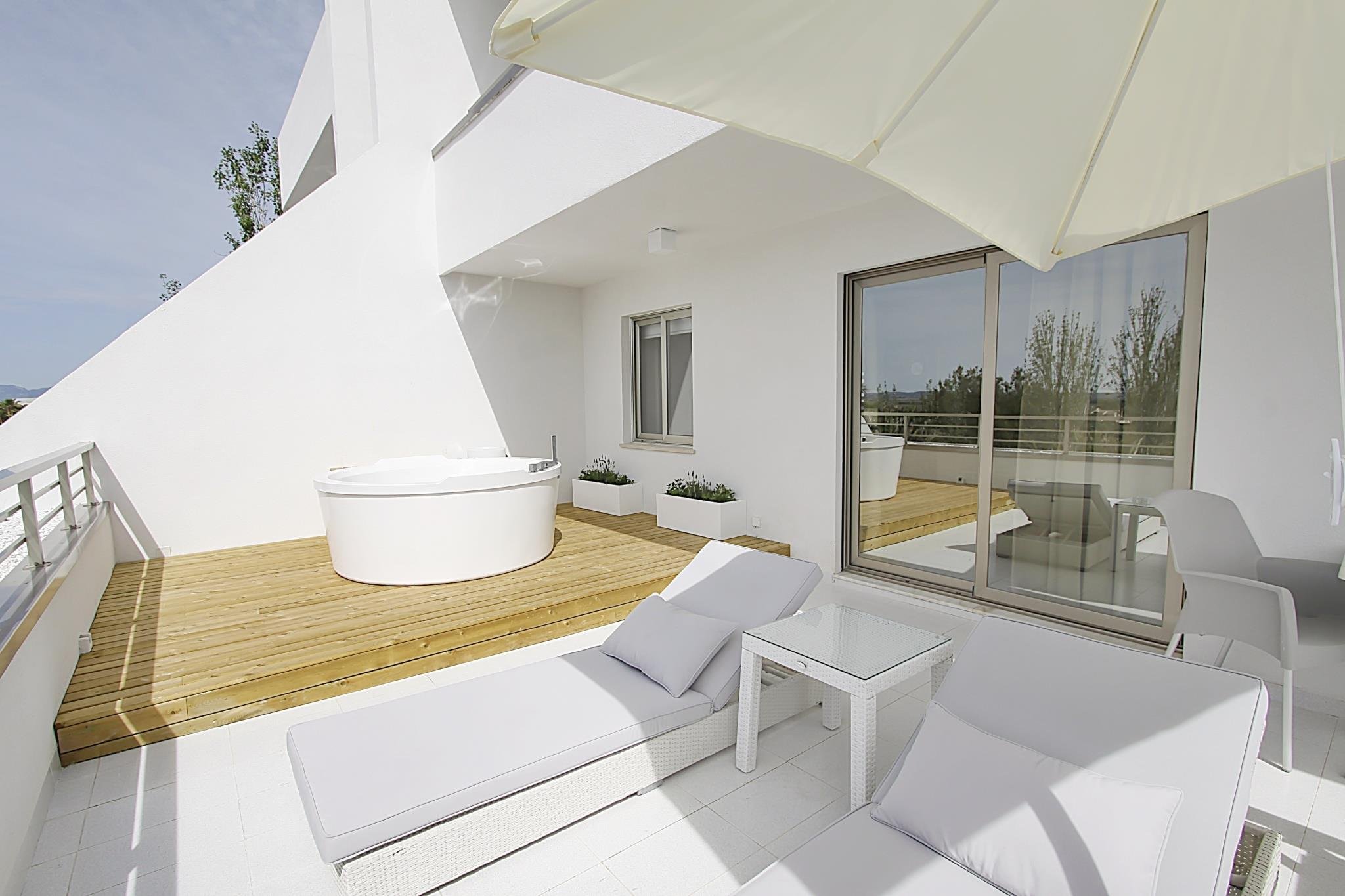 - Premium-suitek - tágasabbak, nappali és optikailag elválasztott hálószoba, jacuzzi a teraszon