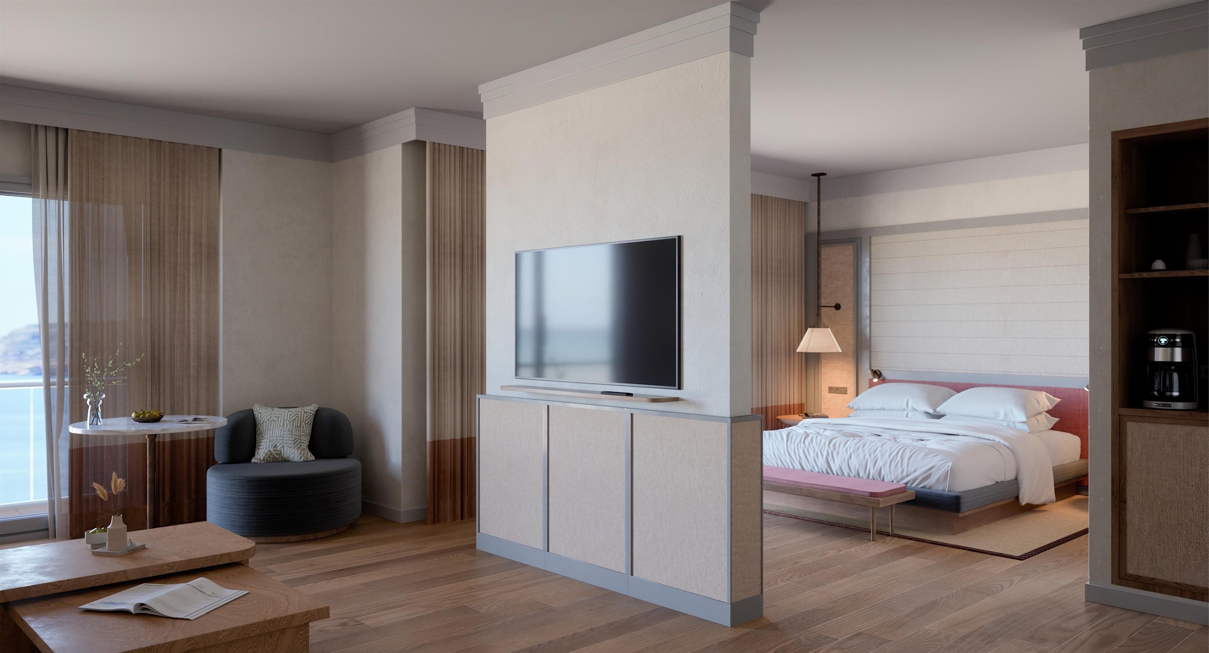 • Junior-suitek - nappali, hálószoba, különálló ágyakkal vagy franciaággyal, oldalról tengerre nézők