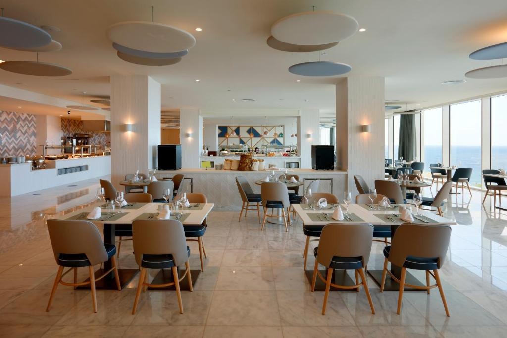 • Büféétterem A szálloda fő étterme svédasztalos rendszerben várja a vendégeket reggeli, ebéd és vacsora idején. A kínálatban nemzetközi és mediterrán fogások, friss saláták, meleg ételek és desszertek egyaránt megtalálhatók. A látványkonyhában a szakácsok helyben készítik az egyes fogásokat, így az ételek mindig frissen kerülnek a vendégek tányérjára. Dress code: vacsoraidőben férfi vendégeink számára hosszúnadrág viselése javasolt. • Snack bár / Pool Snack Bar A medence közelében található bár ideális választás napközben egy könnyű ebédhez vagy harapnivalóhoz. Snackek, gyorsételek, frissítők és válogatott italok állnak rendelkezésre, így a vendégeknek nem kell megszakítaniuk a pihenést egy hosszabb étkezés miatt. • Pool Bar A kültéri medencék mellett található bár frissítő italokat, koktélokat és üdítőket kínál a nap folyamán. Tökéletes hely egy hűsítő ital elfogyasztására napozás vagy fürdőzés közben. • Lobby Bar A szálloda előcsarnokában elhelyezkedő elegáns bár kellemes környezetet biztosít egy kávé, üdítő vagy esti ital elfogyasztásához. Ideális találkozási pont a programok előtt vagy egy nyugodt beszélgetéshez a nap végén. • Show Bar / Theater Bar Az esti órákban nyitva tartó bár, ahol a vendégek szórakoztató műsorok, élő show-k és animációs programok mellett fogyaszthatják el italaikat. A hangulatos környezet tökéletes lezárása egy élményekben gazdag napnak.