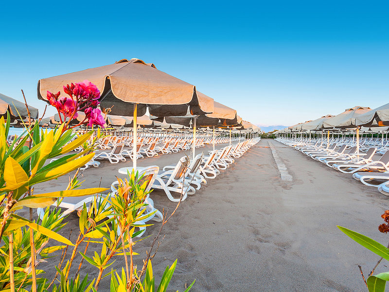 Közvetlen a szállodához tartozó, hosszú, homokos strandon fekszik. Antalya központja számos vásárlási és szórakozási lehetőséggel kb. 15 km-re (olcsó gyűjtőtaxik). A busztranszfer a repülőtérről kb. 20 perc.