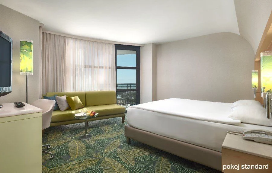 Standard szobák tengerre néző kilátással: 35-40 m², erkéllyel. Központi légkondicionáló, wifi, minibár, TV, fürdőszoba (hajszárítóval, fürdőköpennyel, papuccsal, zuhanyzóval vagy káddal felszerelt.