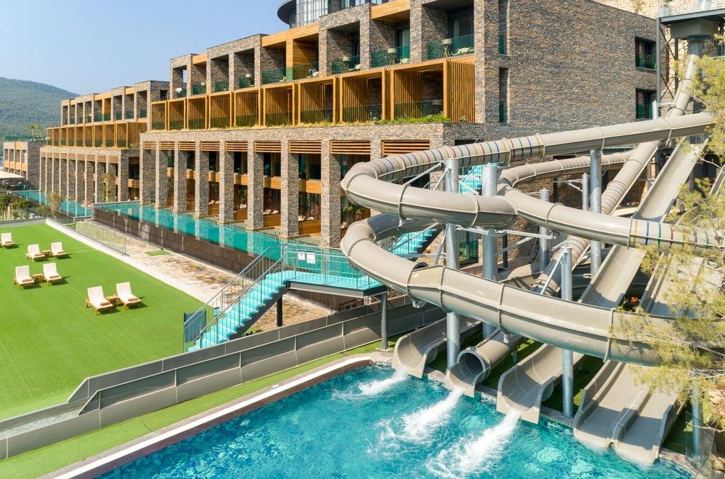 A hegyoldalba épült, Égei-tengerre néző luxusszálloda saját stranddal, három medencével, aqua parkkal, wellness-központtal, több a'la carte-étteremmel és bárral is várja a vendégeket. Külön családos és adults only zónákkal garantált minden korosztály számára a tökéletes nyaralás. 1 km hosszú homokos strandja 3 részre tagolt, és külön csak felnőttek részére kialakított rész is található, valamint a tenger egy lótuszvirág alakú mólóról is megközelíthető.