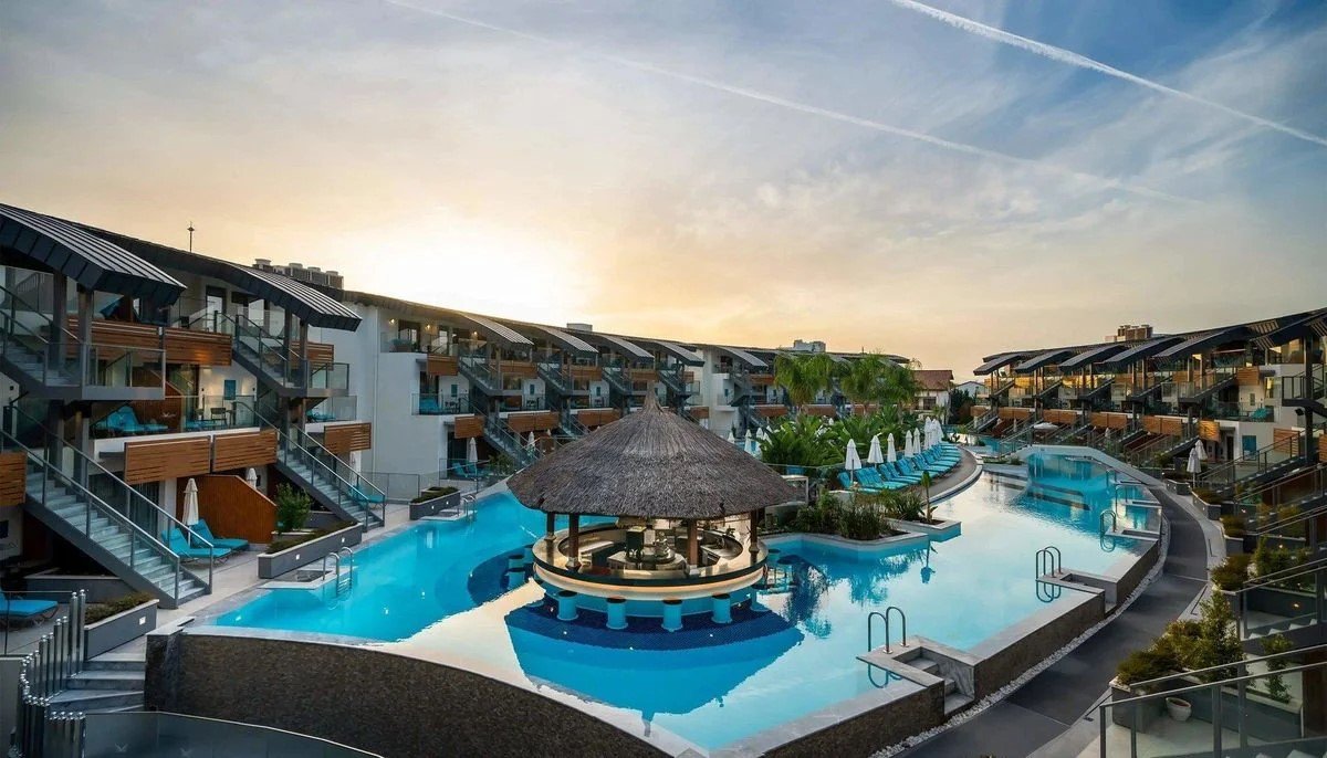 Az ötcsillagos szállodakomplexum elegáns, tágas és ízlésesen berendezett előcsarnokkal várja vendégeit, ahol 24 órás recepció és több lift biztosítja a kényelmet. A kulináris élményeket a főétterem büféételei, egy kiváló kávézó cukrászdával, valamint nyolc bár – köztük a medencebár és a strandbár – teszik teljessé. Felár ellenében, előzetes foglalással à la carte étterem is rendelkezésre áll. A komplexumban konferenciaközpont, mini market és ingyenes Wi-Fi is található. A pihenést és szórakozást a belső medence, a fő kültéri medence, a gyermekmedence, valamint az öt csúszdával felszerelt vízi park szolgálja. A napozóágyak, napernyők és strandtörölközők a medencék mellett ingyenesen biztosítottak. Térítés ellenében mosoda, szobaszerviz, autókölcsönzés, orvosi ellátás, fodrász, fotós és személyi edző szolgáltatás is igénybe vehető. Elfogadott hitelkártyák: Visa és MasterCard.