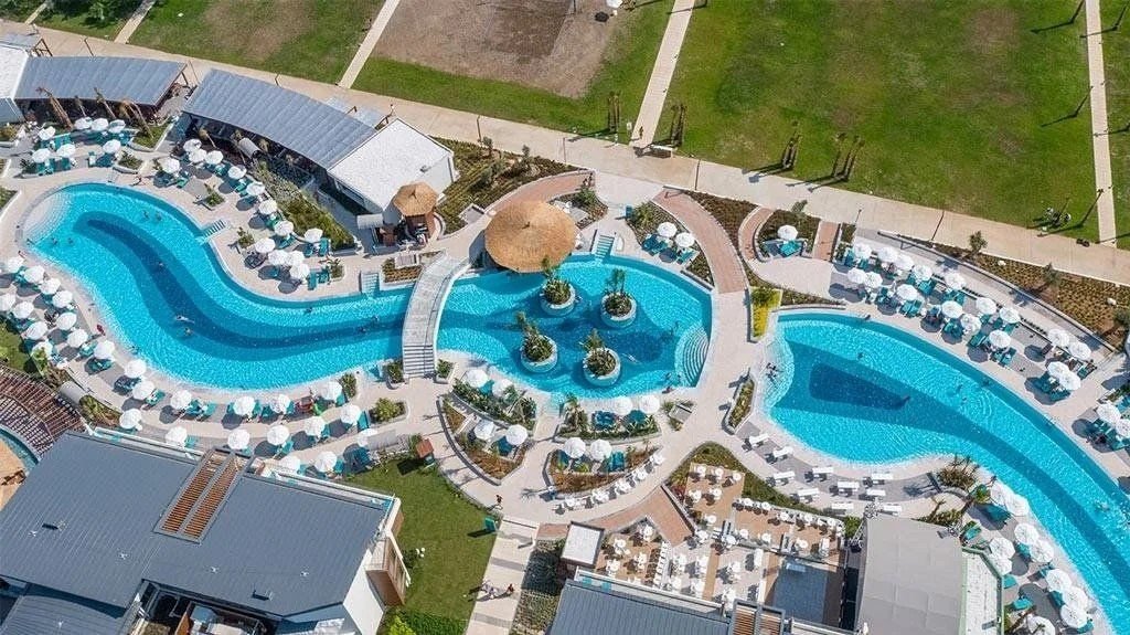 Luxus, újonnan épült szálloda;Vízicsúszdák;Közvetlenül a part mellett;;