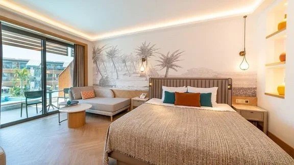Kétágyas szoba medencekapcsolattal: A kényelmes, ízlésesen berendezett szoba egy hálószobával rendelkezik, amelyben egy franciaágy és egy egyszemélyes ágy található, legfeljebb három felnőtt elszállásolására alkalmas. A vendégek kényelmét légkondicionálás, zuhanyzó, hajszárító, papucs, fürdőszoba és külön WC biztosítja. A szoba felszereltségéhez tartozik LED televízió, telefon, minibár, tea- és kávéfőző készlet, széf, ingyenes Wi-Fi, erkély, valamint gőzvasaló és vasalódeszka.