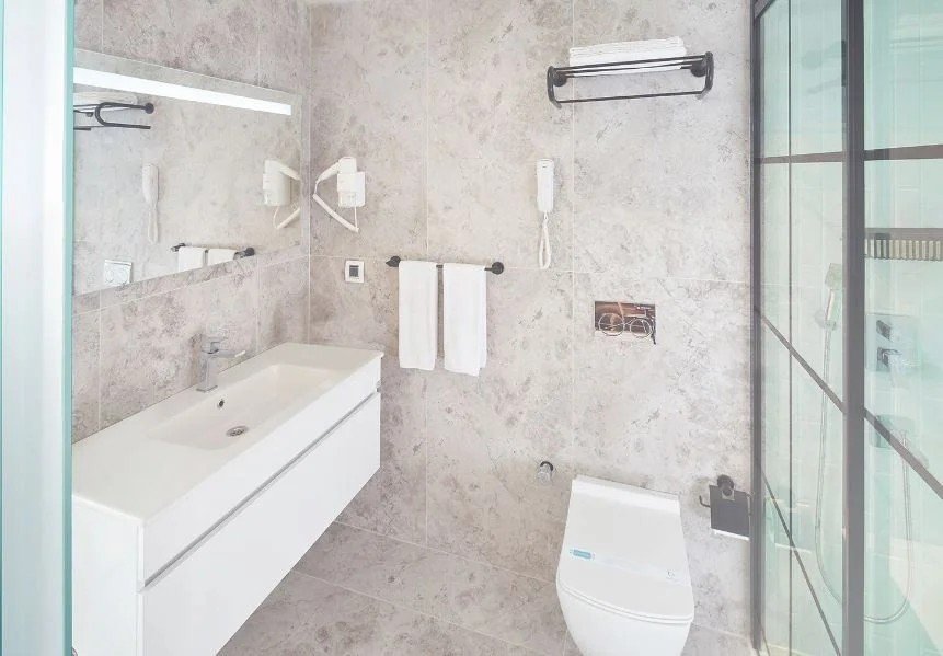 Minden szoba elegánsan berendezett, kilátással a városra vagy az úszómedencére, „smart hotel” érintőképernyős vezérlőpanellel, telefonnal, műholdas TV-csatornákkal, síkképernyős TV-vel, széffel, légkondicionálóval (hűtés és fűtés), szekrénnyel, zuhanyzóval, hajszárítóval, papuccsal, minibárral, vízforralóval, kávé- és teaválasztékkal, ébresztő szolgáltatással, Wi-Fi internettel minden szobában. A standard szobákban két felnőtt vagy egy kétfős család szállhat meg. Kétágyas vagy különágyas szobák állnak rendelkezésre. Kérésre babaágyat is biztosítanak.