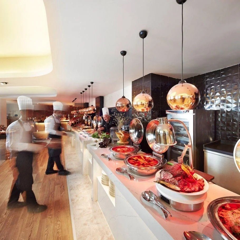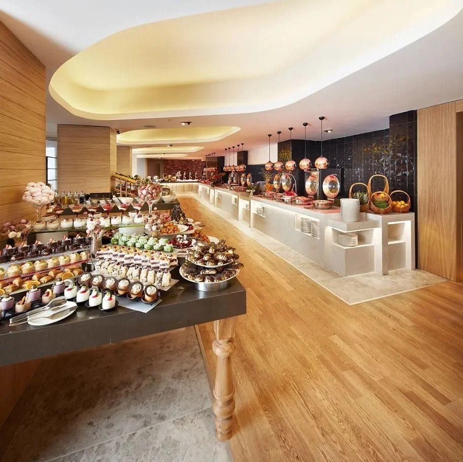 All inclusive ellátás: 23:30-ig tart, mely tartalmazza a reggelit (7:00-10:30), az ebédet (12:30-14:00), a vacsorát (19:00-21:30) büfé formájában. Napközbeni harapnivalók. Helyi gyártmányú alkoholmentes és alkoholos italok a szálloda által meghatározott időpontokban és helyeken. Felár ellenében: importált alkoholos italok, török kávé, friss gyümölcslevek, válogatott italok és koktélok.