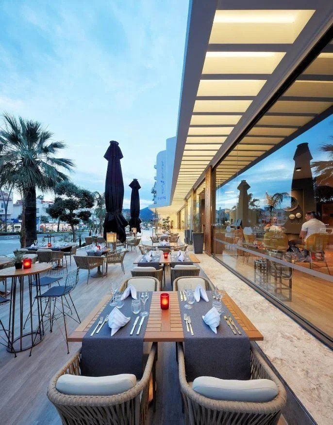 A modern szálloda a tengerparti sétány közelében helyezkedik el, amely egészen Marmaris hangulatos kikötőjéig vezet, mintegy 2,5 km távolságra. A legközelebbi bevásárlási lehetőségek körülbelül 280 méterre, míg a bevásárlóközpont kb. 500 méterre található. A szálloda előtt buszmegálló található, ahonnan könnyen elérhető Marmaris központja, igény esetén pedig vízi taxi is igénybe vehető. A dalamani repülőtér megközelítőleg 90 km-re fekszik a szállodától.